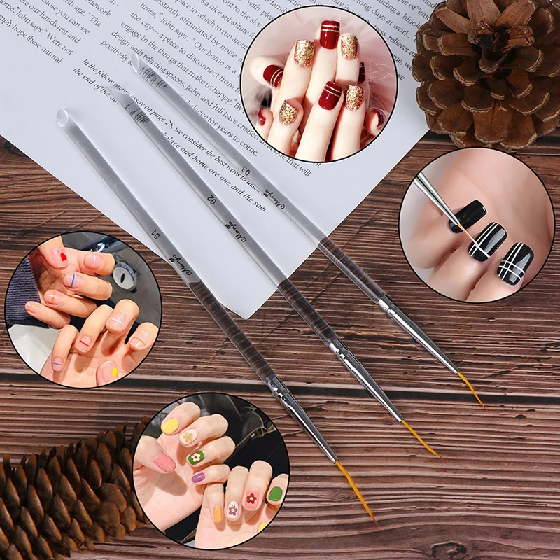 Related Product for Hot 3pcs/set Dual End Transparent Handle Stripes Lines Liner Drawing Painting Brush Nail Art Acryli